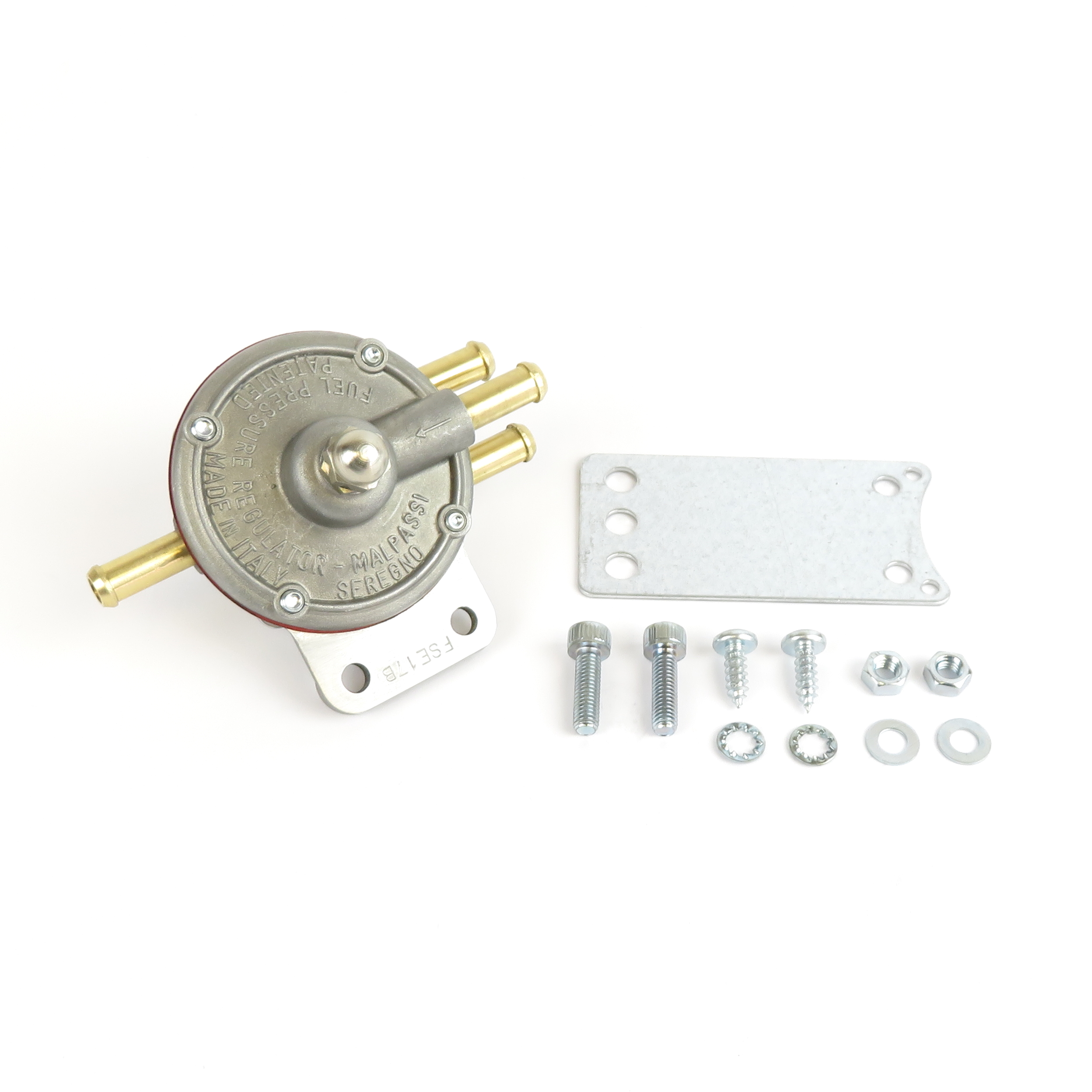 Adjustable Malpassi Fuel pressure regulator, supplied as original equipment on Lotus turbo cars fitted with Dell’orto DHLA carburettors.
