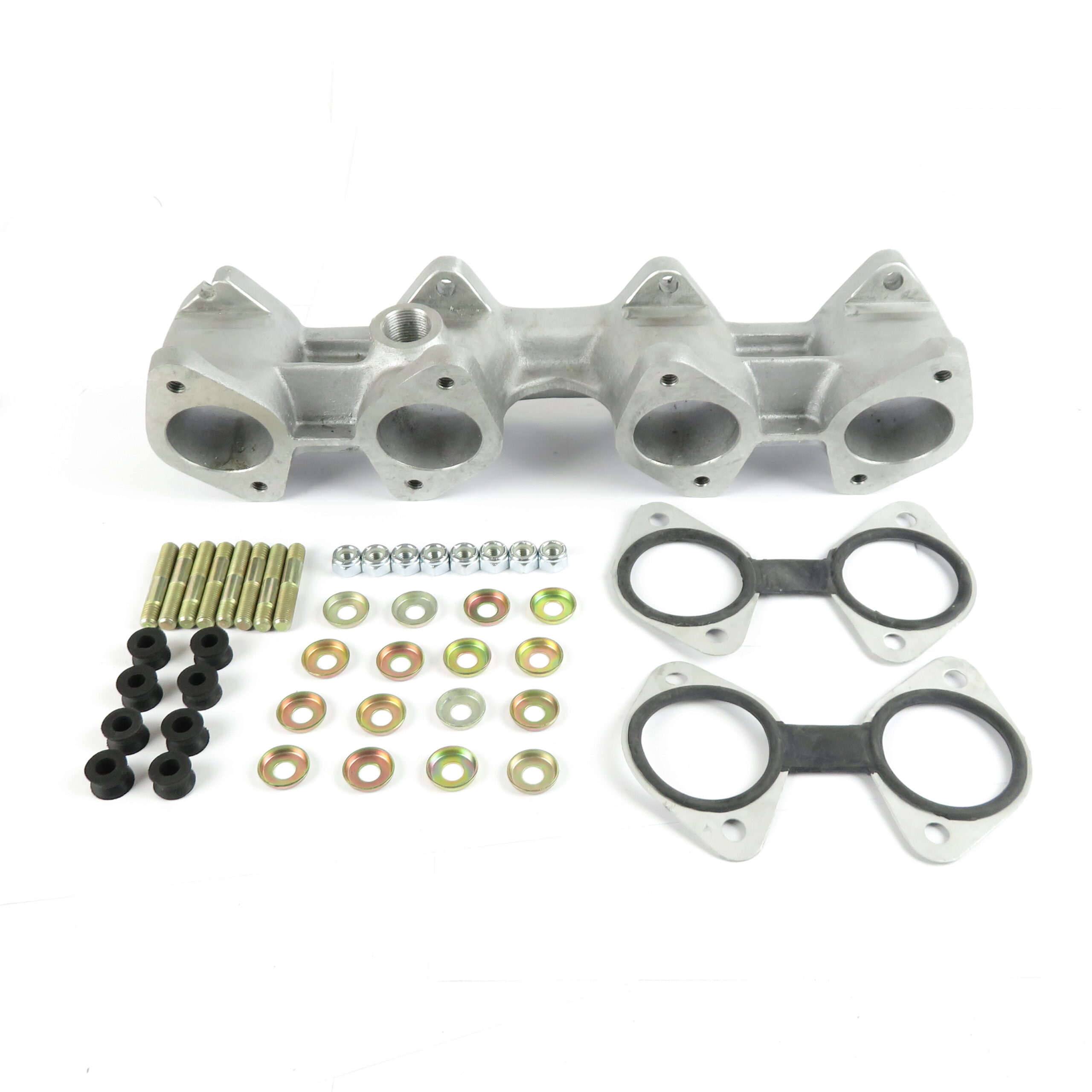 BMW 2002 / 2000 manifold to suit twin DHLA/DCOE 45s. Drilled and tapped to accept brake servo union.