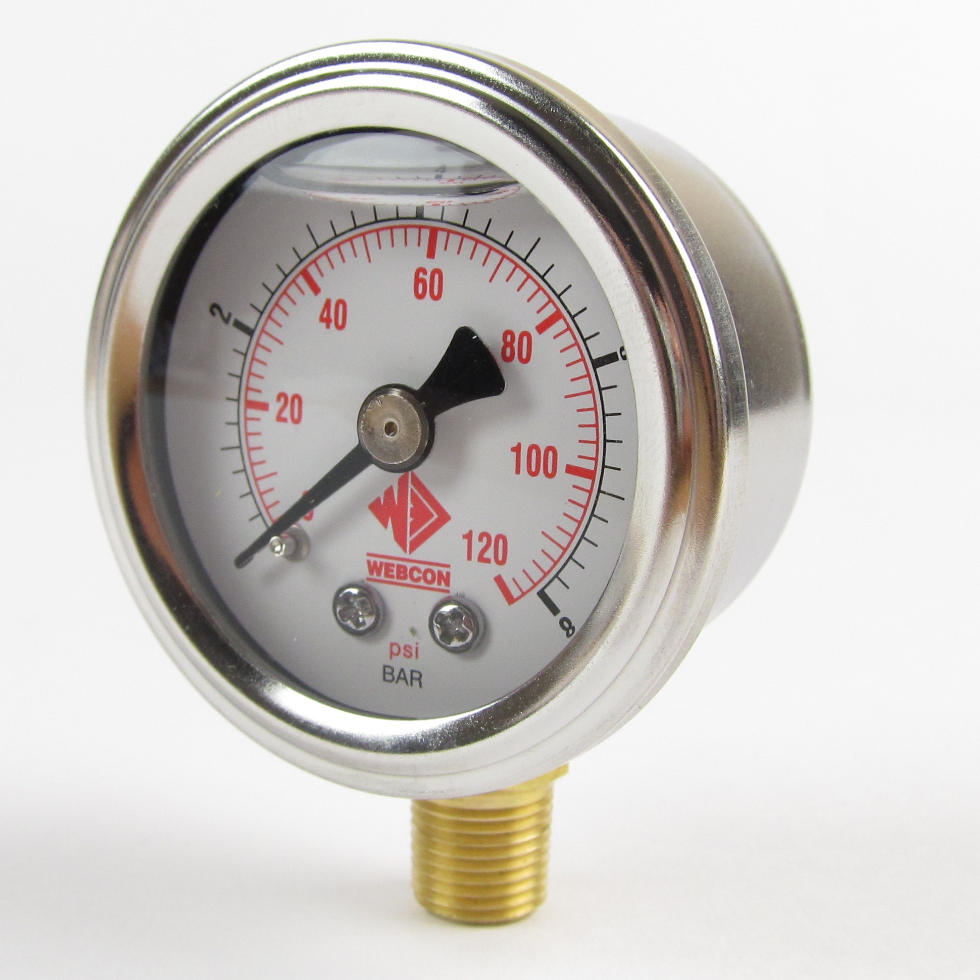 Superior quality fluid filled gauge Webcon branded to distinguish from lesser quality brands