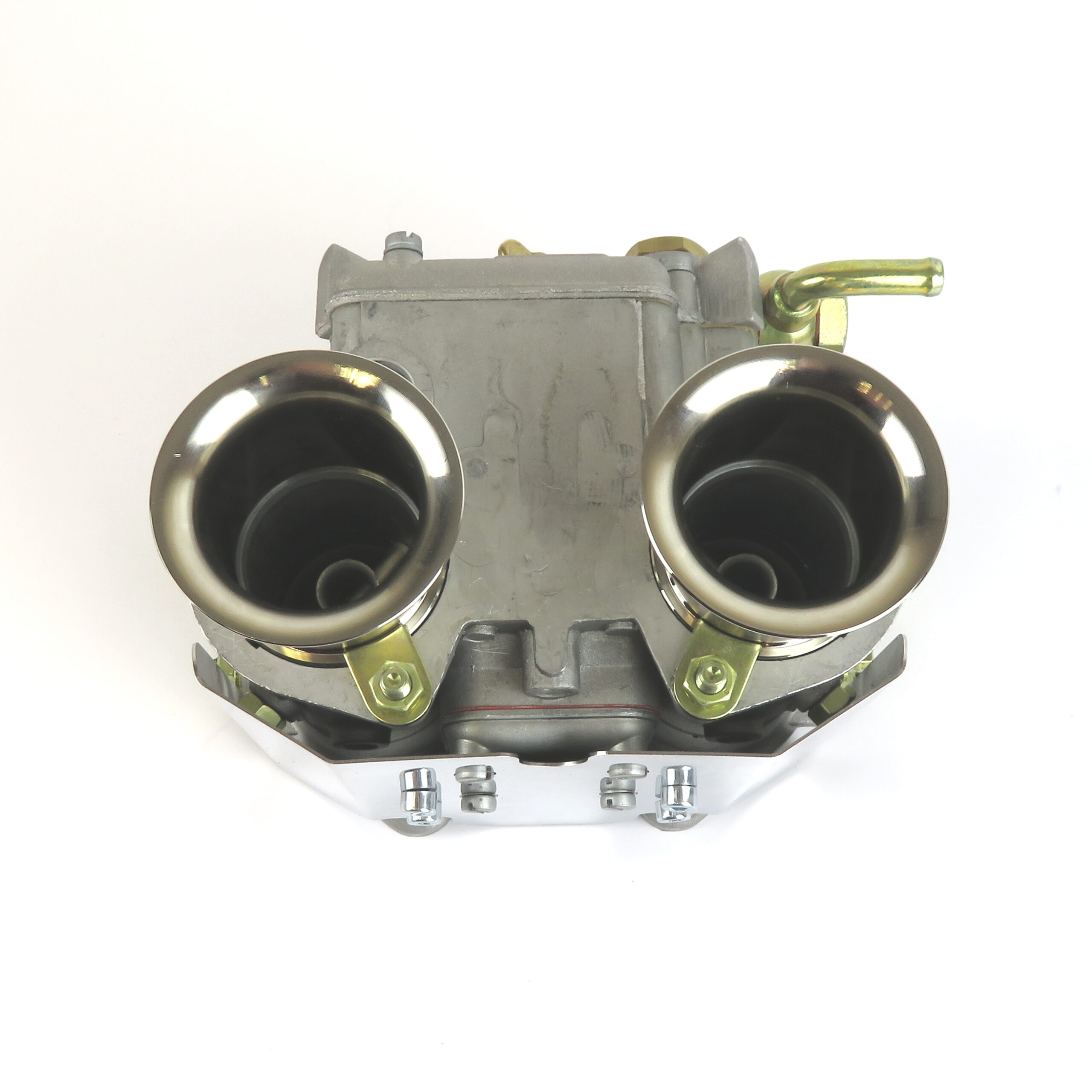 Stainless steel heat shield to protect Weber DCOE the carburettor from radiant exhaust heat.